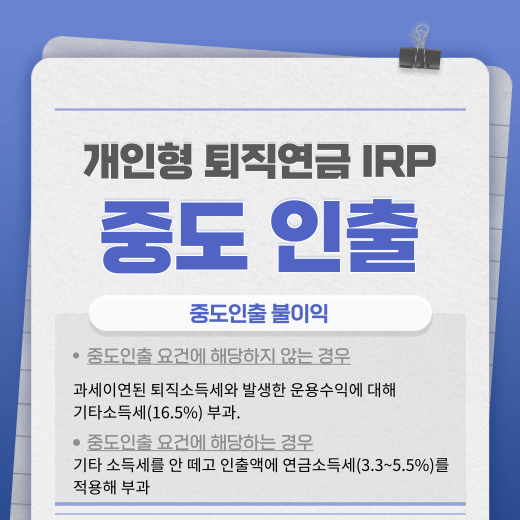 개인형 IRP 퇴직연금 중도인출 또는 해지 시 세금은?