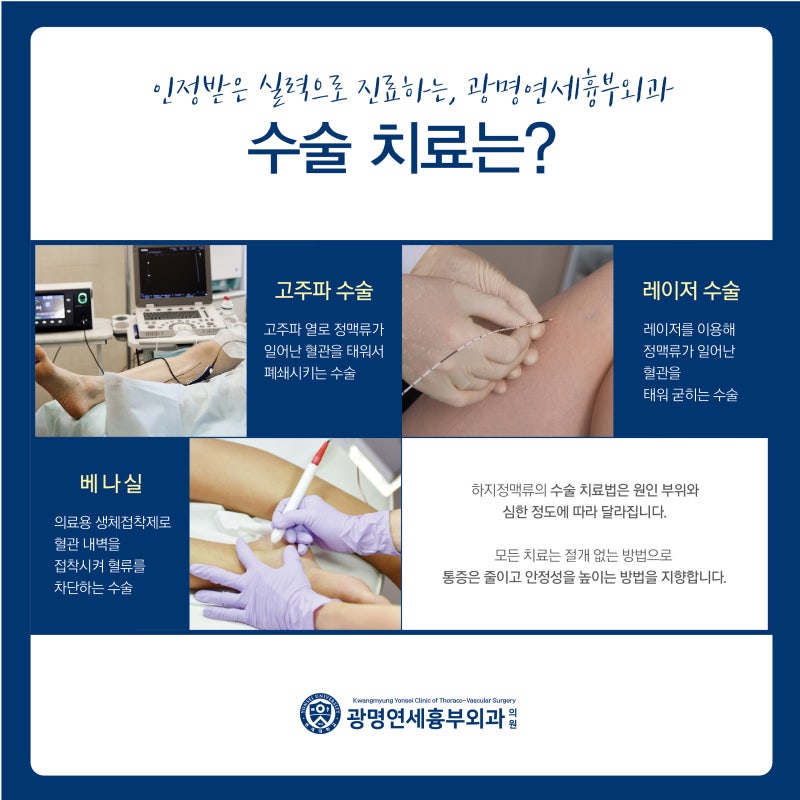 오늘은 광명에서 하지정맥류를 치료하는 서울장좋은외과에서 하지정맥류 치료방법에 대해 알아보도록 하겠습니다.