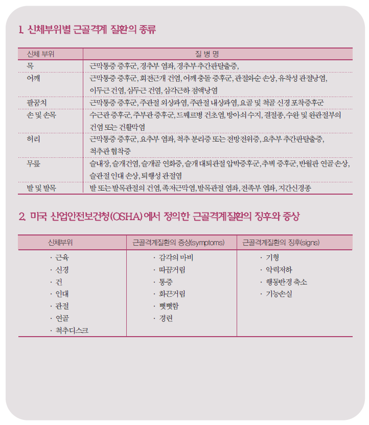 칠원동 정형외과 부위별로 발생할 수 있는 근골격계 질환의 종류입니다