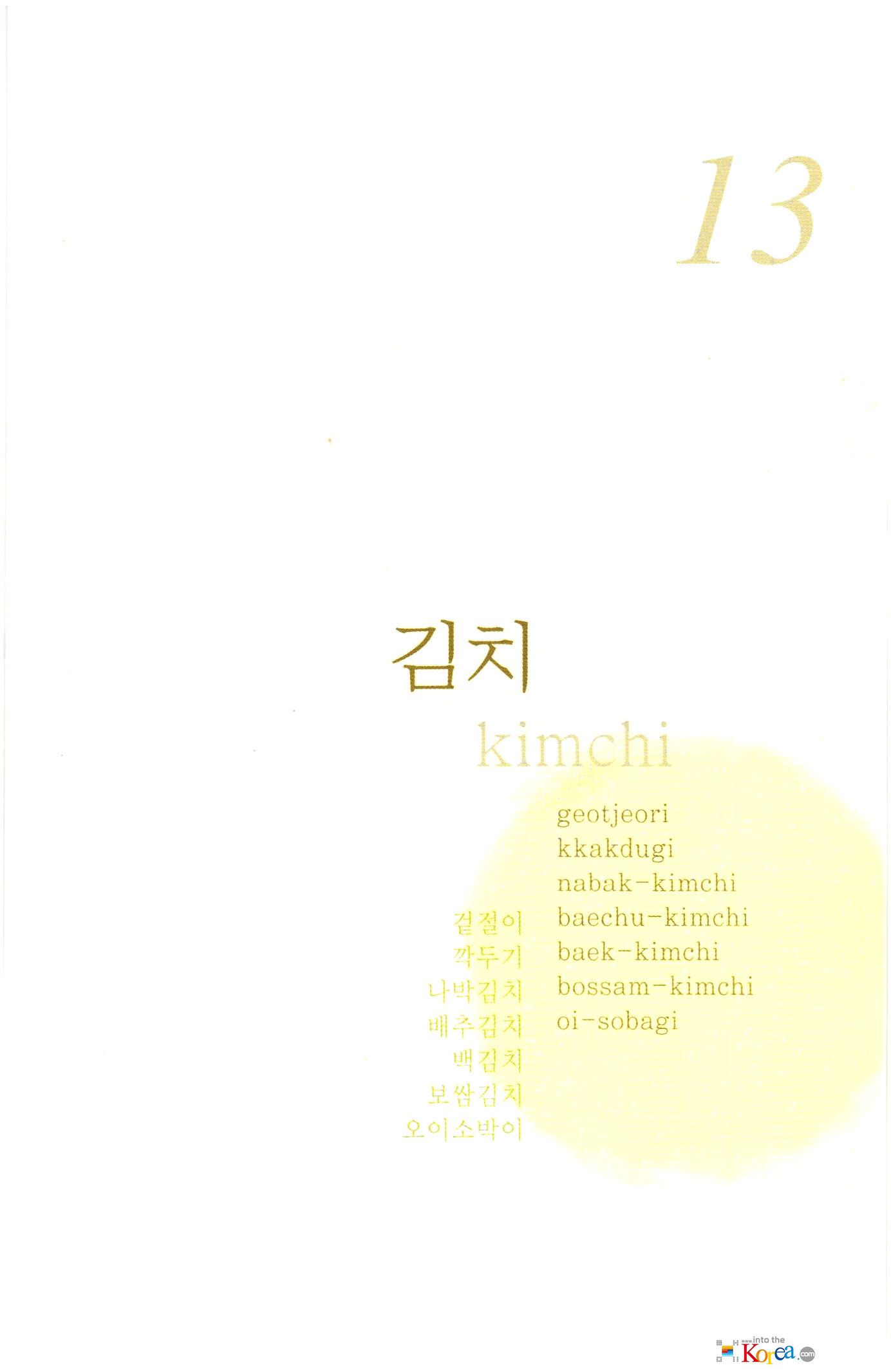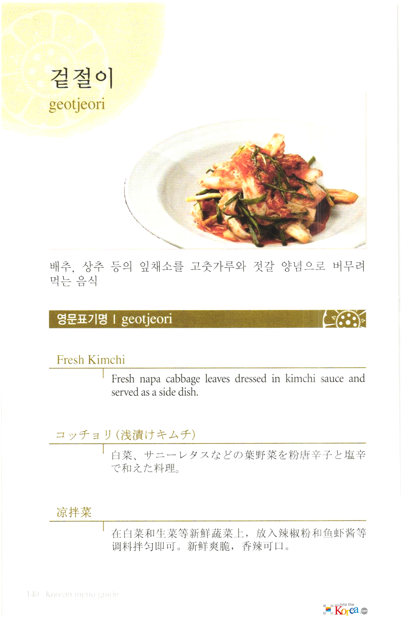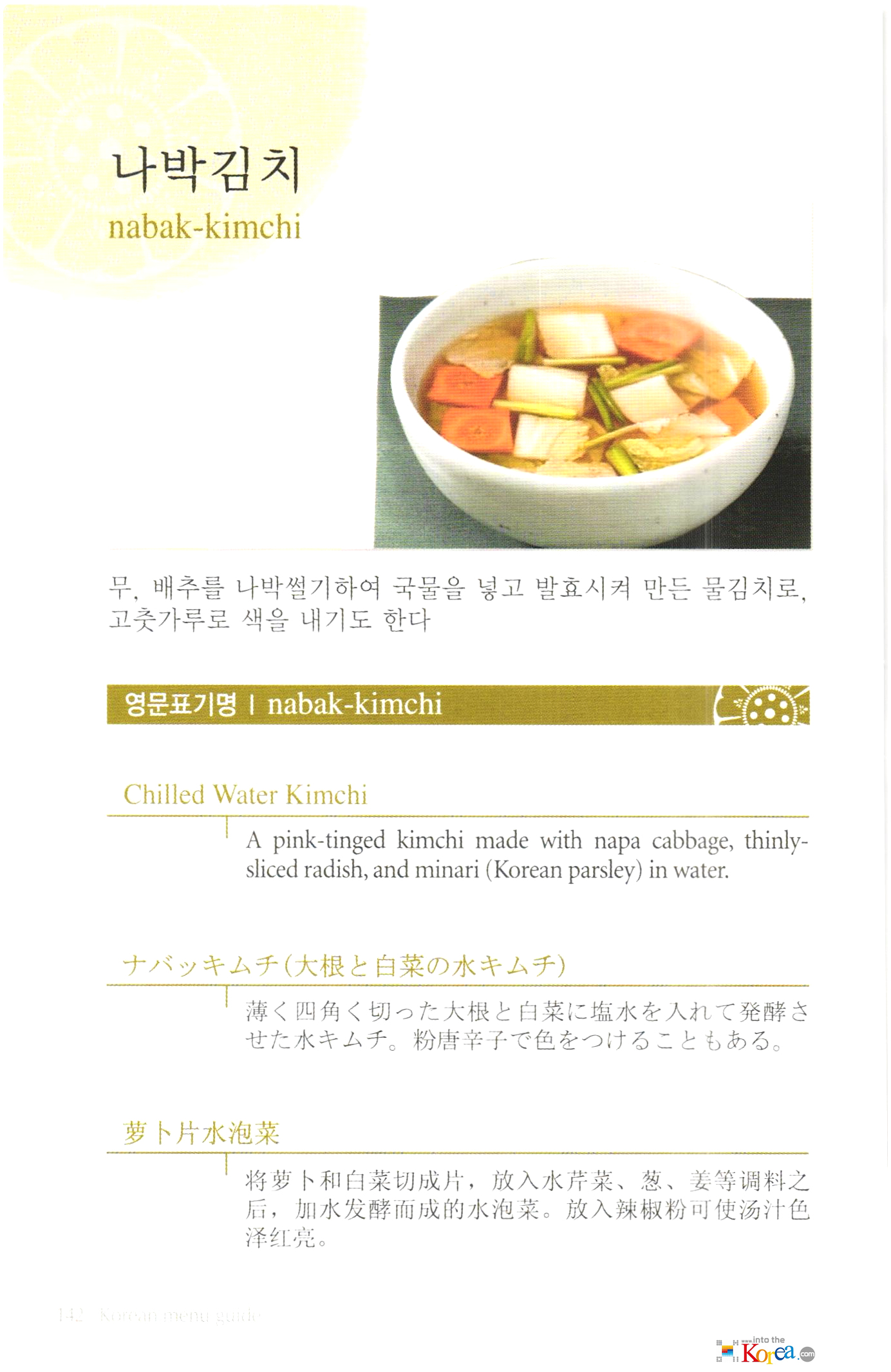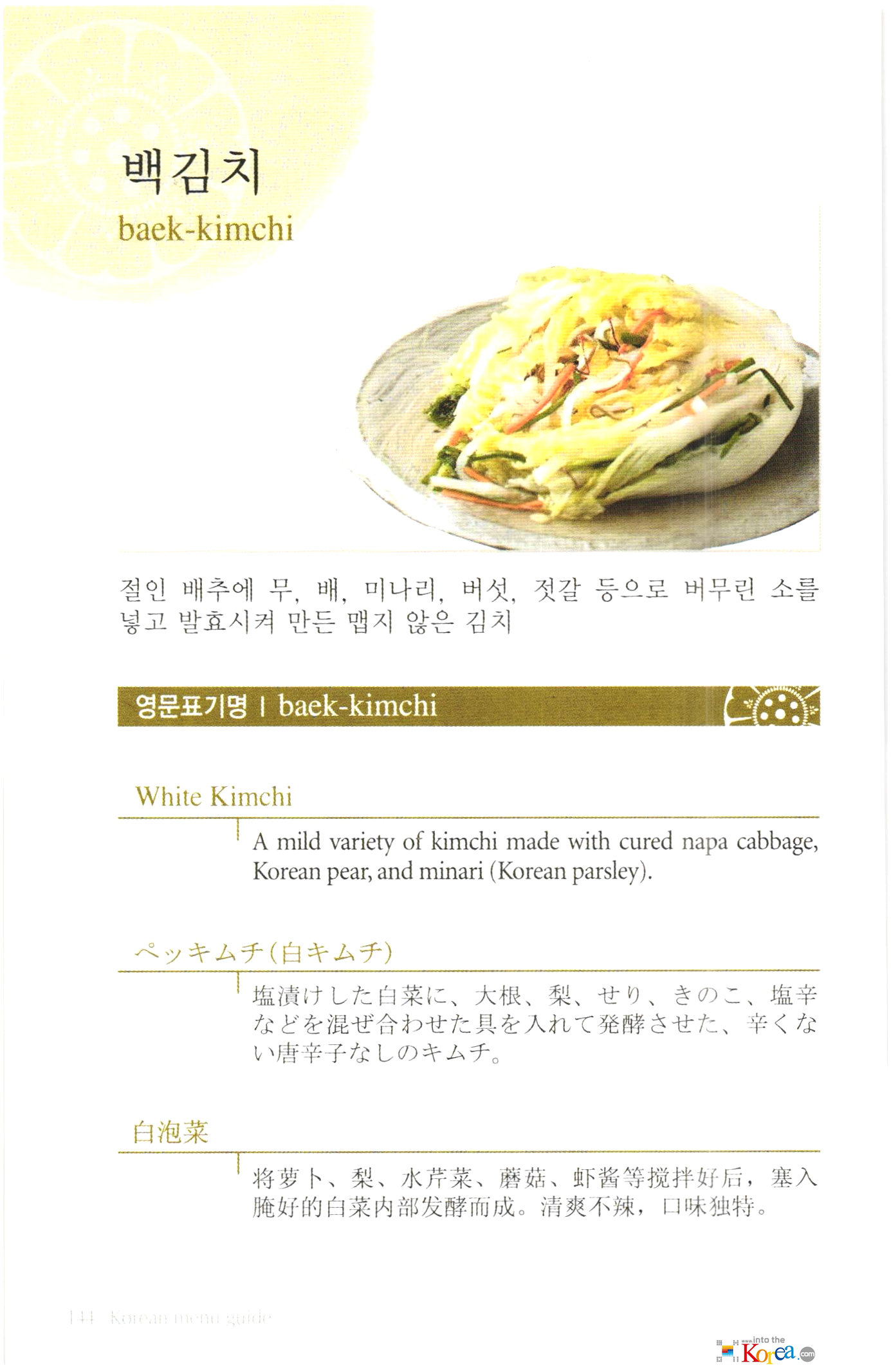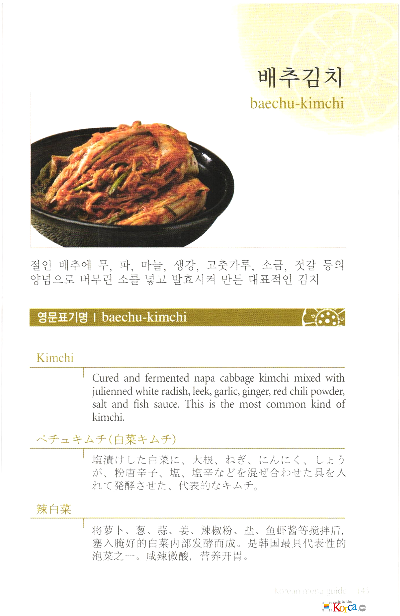 Korean food(한식) 메뉴 외국어 표기:김치